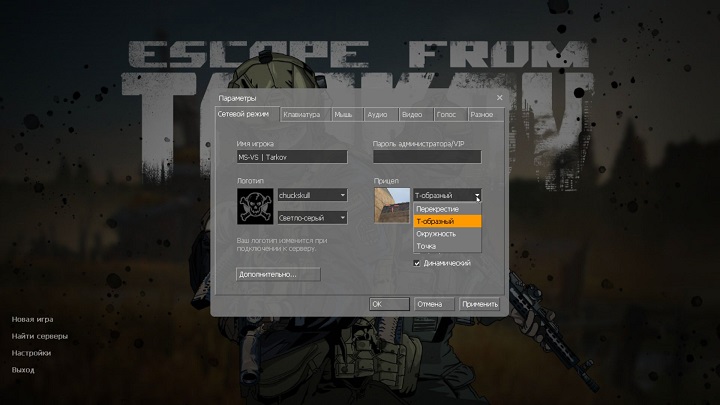 | 3789 + серверов в поиске | Четыре вида прицела | Из игры Tarkov |